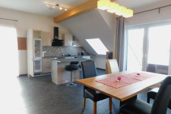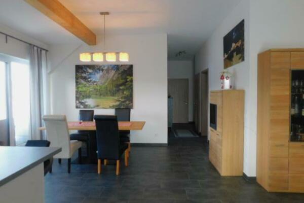 Der Wohn-Essbereich ist offen gestaltet, d.h. die Wohnlandschaft, die Essecke und die Küche gehen nahtlos ineinander über und schließen mit einer üppig dimensionierten Terrasse ab.