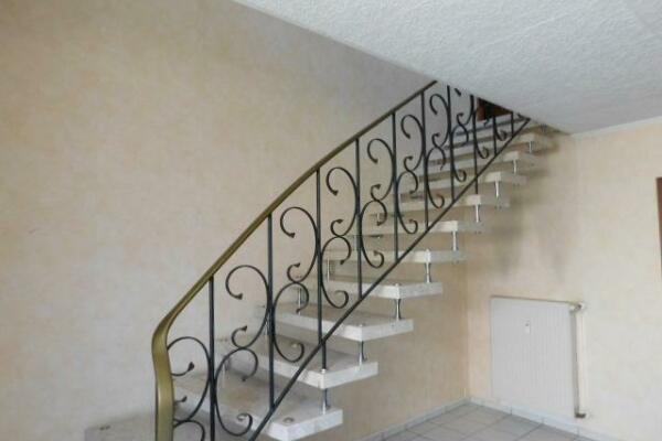Die Aufteilung der Wohnung im 1. Stock ist etwas ungewöhnlich, denn die Räume verteilen sich auf verschiedene Ebenen.Auf insgesamt ca. 115 qm Wohnfläche verteilen sich 4 Zimmer, eine Küche, ein Badezimmer, mehrere Abstellräume und ein Gäste WC.