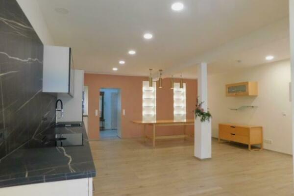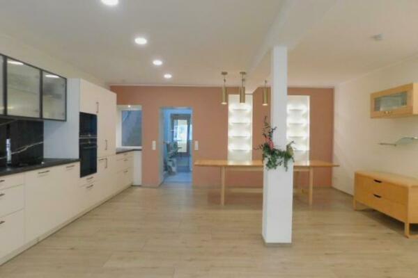 großer Wohnbereich mit Einbauküchenzeile