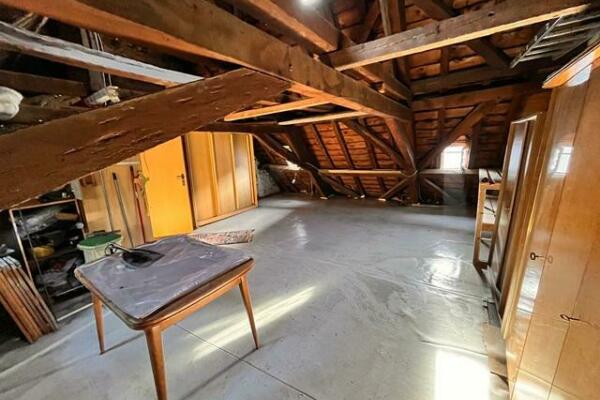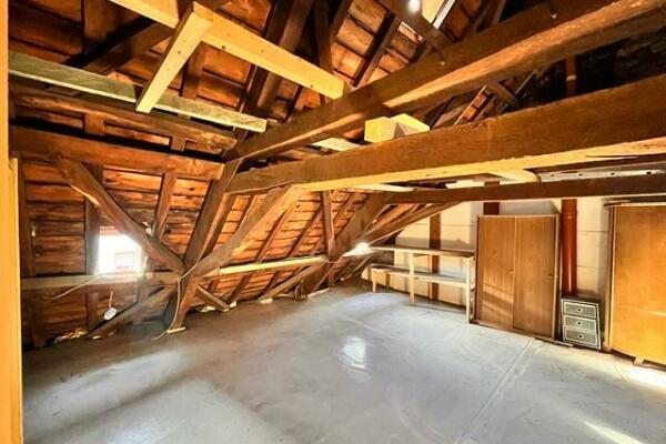 Vom Flur führt eine Stiege hinauf ins Dachgeschoss, das sich in gutem Originalzustand und mit viel Ausbaupotential präsentiert.