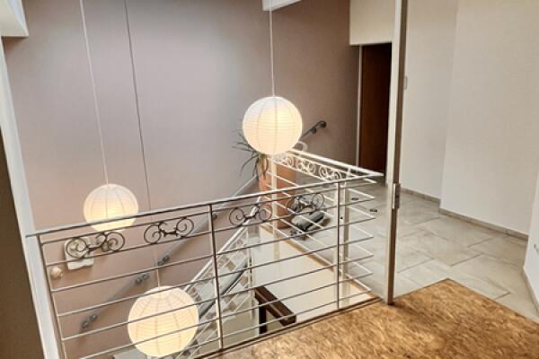Vom Atrium führt die Haustreppe ins OG zu einer kleinen Galerie, von der Sie ein weiteres Badezimmer, sowie einen Hauswirtschaftraum mit der zentralen Heizungsanlage erreichen.