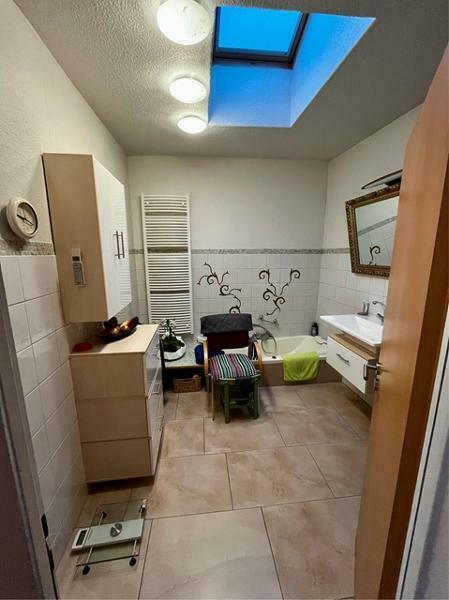 Auch die Bäder sind gefliest und mit Dusche, Toilette, Handwaschbecken und das im OG mit Wanne und Tageslichtkuppel ausgestattet.