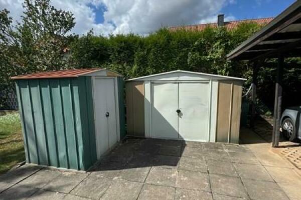 Zur Wohnung gehört ein Außenstellplatz vor dem Haus und ein Carport hinter dem Haus.