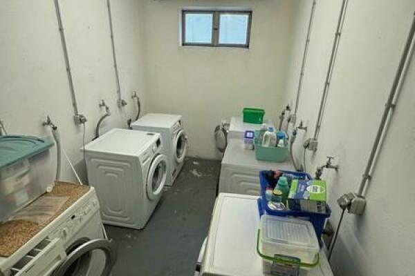 Zur Wohnung gehört ein Kellerraum mit normalen Wänden und Außenfenster von ca. 10 m². Zusätzlich stehen Gemeinschaftsräume wie Waschraum, Trockenraum und Heizraum sowie im Garten eine Fahrradbox zur Verfügung. Das Warmwasser wird in der Wohnung über einen elektrischen Durchlauferhitzer erzeugt.