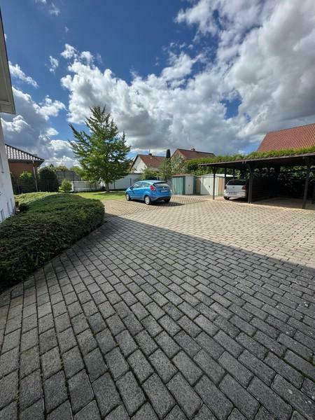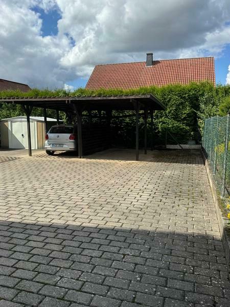Zur Wohnung gehört ein Außenstellplatz vor dem Haus und ein Carport hinter dem Haus.