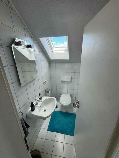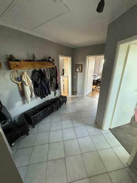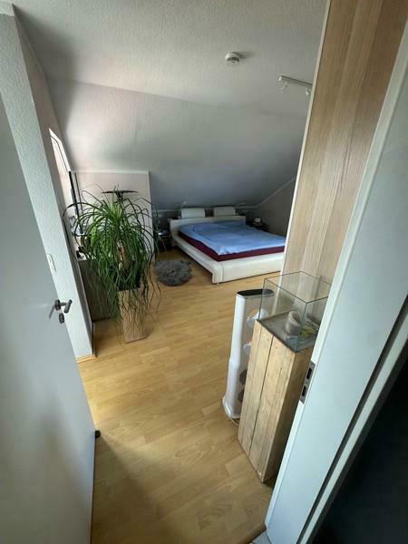 Vor dem Betreten der Wohnung befindet sich im Treppenbereich ein kleiner Platz, der sich ideal für einen Schuhschrank eignet. Beim Eintreten gelangen Sie in einen Flur, von dem aus alle Räume erreichbar sind. Auf der rechten Seite liegt zunächst das Badezimmer, ausgestattet mit Badewanne, Dusche, WC, separatem Hygienebereich sowie einem Fenster. Direkt daneben befindet sich ein Kinderzimmer, das sich ebenso gut als Arbeitszimmer nutzen lässt. Im Anschluss folgt das großzügige, helle Schlafzimmer, das über einen praktischen Ankleidebereich verfügt.