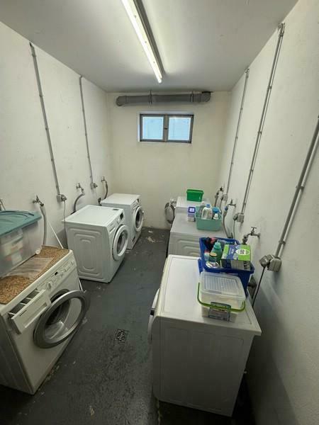 Zur Wohnung gehört ein Kellerraum mit normalen Wänden und Außenfenster von ca. 10 m². Zusätzlich stehen Gemeinschaftsräume wie Waschraum, Trockenraum und Heizraum sowie im Garten eine Fahrradbox zur Verfügung. Das Warmwasser wird in der Wohnung über einen elektrischen Durchlauferhitzer erzeugt.