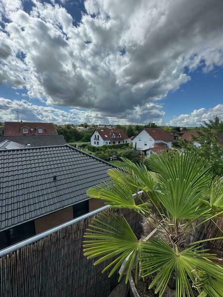 Auf der gegenüberliegenden Seite des Flurs öffnet sich der Wohn- und Essbereich, der durch die Dachschrägen eine besondere wohnliche Atmosphäre erhält. Von hier aus gelangen Sie auf das Highlight der Wohnung, die rund 25 m² große, nach Süden ausgerichtete Dachterrasse/Loggia. Angrenzend an den Wohn- und Essbereich liegt die separate Küche mit moderner Einbauküche.