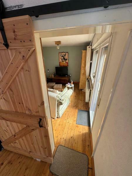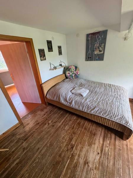 Beim Betreten des Hauses gelangen Sie in den Flur. Links davon liegt die Küche, die mit einer Einbauküche ausgestattet ist. Daran anschließend befindet sich das Wohn- und Esszimmer. Dieses ist als Durchgangszimmer angelegt und führt weiter in ein weiteres Zimmer, das je nach Bedarf als Schlafzimmer oder zusätzliches Wohnzimmer genutzt werden kann.