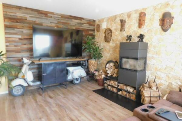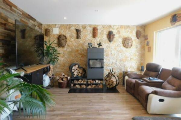 Im Wohnbereich gibt es einen Kaminanschluss für einen Kaminofen als zusätzliche Beheizungsmöglichkeit.