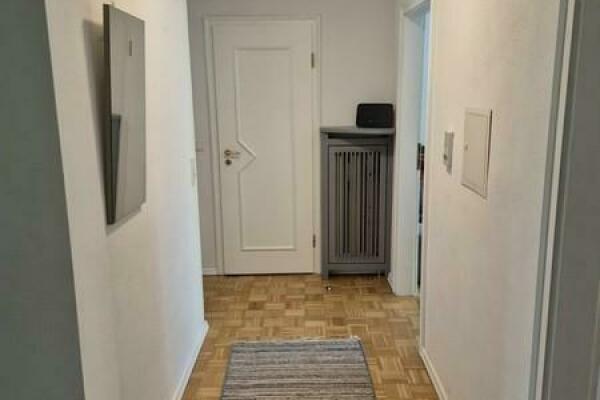 Beim Betreten der Wohnung gelangen Sie in einen zentralen Flur, von dem aus alle Räume erreichbar sind. Auf der rechten Seite befindet sich eine Garderobe. Rechts liegt ein flexibel nutzbares Zimmer, beispielsweise als Büro oder Schlafzimmer, gegenüber befindet sich die Küche, die mit einer Einbauküche ausgestattet ist und im Kaufpreis enthalten ist. Weiter geradeaus liegt das Badezimmer mit Dusche, WC und Waschbereich, daneben befindet sich das Hauptschlafzimmer sowie ein kleines Gäste-WC.
