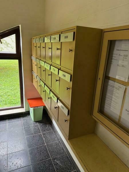 Die Wohnanlage wird von zwei Hausmeistern mit eigenem Büro sowie einem Gärtner betreut und präsentiert sich entsprechend gepflegt. Direkt hinter dem Haus beginnt ein Naturschutzgebiet mit Wald, ideal für Spaziergänge und Erholung. Zudem zeichnet sich die Nachbarschaft durch ein starkes Gemeinschaftsgefühl aus: Feste, ein Weihnachtsmarkt und weitere Aktivitäten werden regelmäßig veranstaltet.