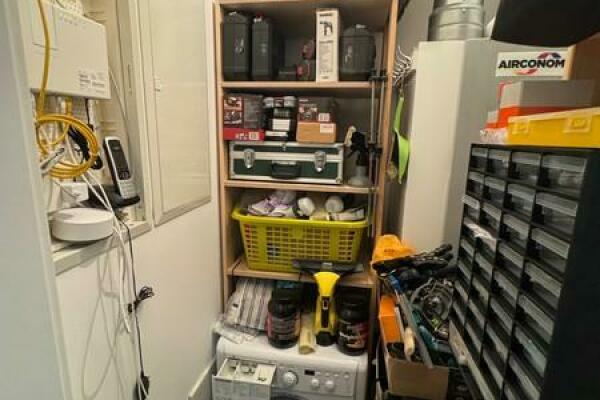 Der Schlafbereich schließt direkt an und verfügt über ein ensuite Duschbad (WC, Waschplatz, Duschzone). Ein zweites Duschbad sowie ein Abstellraum mit Anschluss für Waschmaschine und Trockner sind über einen separaten Flur erreichbar.