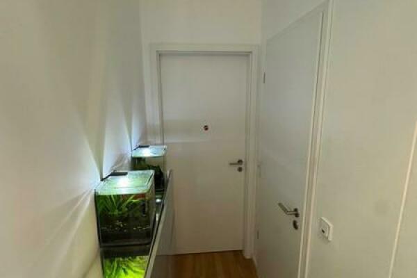 - Böden & Innenausbau: pflegeleichte Fliesen in den Funktionsbereichen, Parkett im Wohnen/Schlafen; Holztüren in allen Räumen