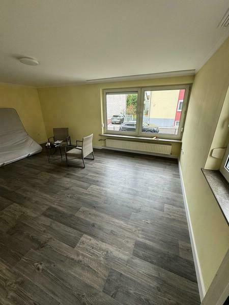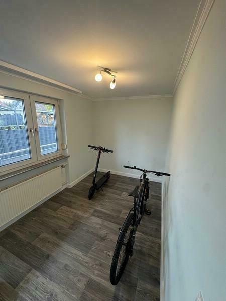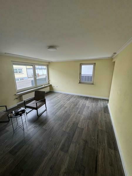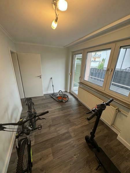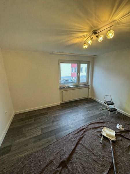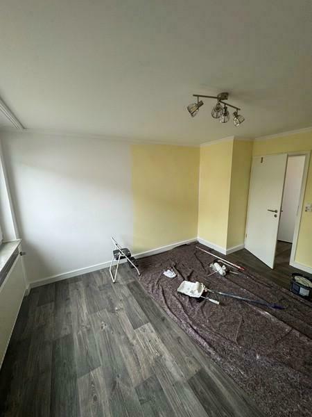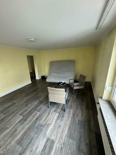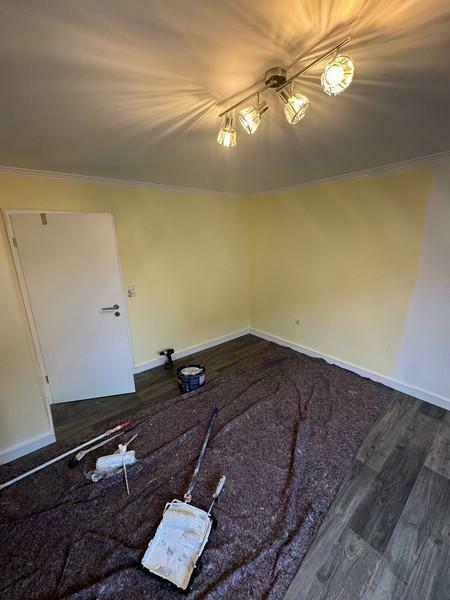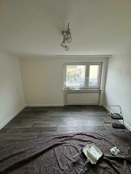 Gegenüber nach links befindet sich das größere der beiden Zimmer, die als Schlafzimmer oder Arbeitszimmer und Schlafzimmer nutzbar sind. Wie auf den Bildern zu erkennen ist, sind die Auszugsrenovierungen in den letzten Zügen.