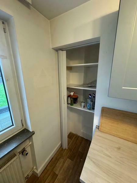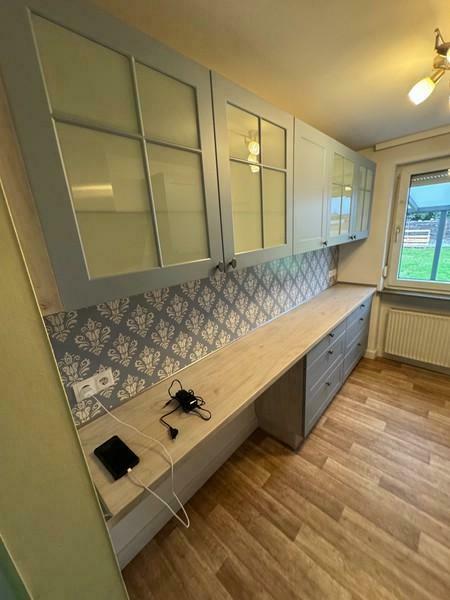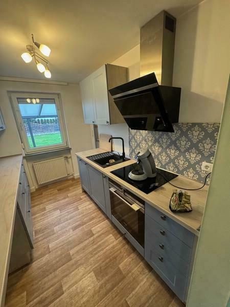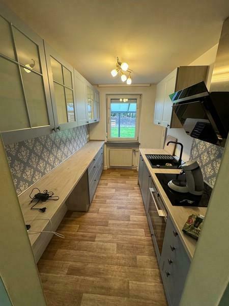 Die nächste Tür führt in die kleine Wohnküche in der eine hochwertige EBK aus 2022 dem Raum ein gemütliches Aussehen verleiht und zum Kochen einlädt. Am Ende der Küche ist noch ein kleiner Vorratsraum untergebracht und macht das Wohnen und Leben für einen 1 oder 2 Personenhaushalt praktisch.