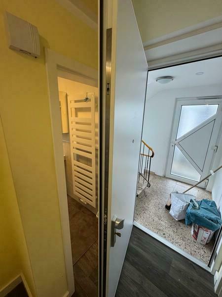 Wenn Sie das Haus durch die Haupteingangstür betreten, befinden Sie sich im Treppenhaus und stehen vor Ihrer Wohnungseingangstür. Diese wurde kürzlich durch eine hochwertige Stahlsicherheitstür mit Spion ersetzt.