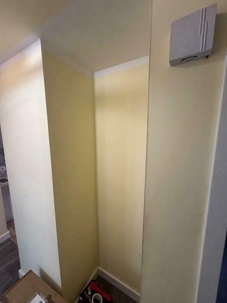Einen Schritt weiter im Flur befindet sich rechts eine Vertiefung, die sich für eine Garderobe oder einen Wandschrank direkt anbietet.