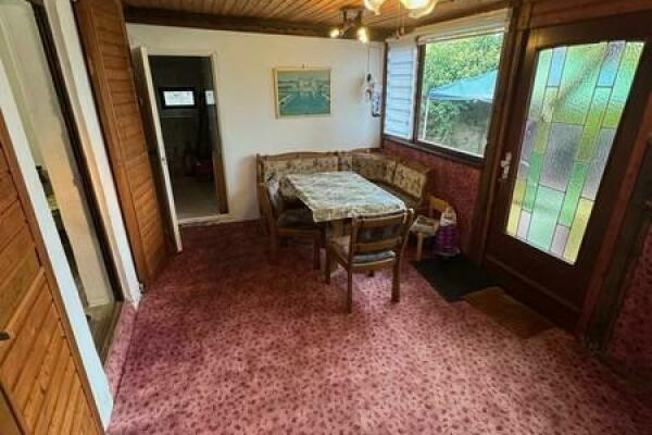 Beim Betreten des Hauses gelangen Sie zunächst in einen Windfang, von dem aus Sie in den zentralen Flur des Hauses gelangen. Auf der linken Seite befindet sich das Wohnzimmer, geradeaus der Wintergarten, der ausreichend Platz für eine gemütliche Sitzecke bietet. Das Badezimmer auf der rechten Seite des Flurs ist mit einer barrierefreien Dusche, einem Waschbecken sowie einem Waschmaschinenanschluss ausgestattet. Daneben liegt das Gäste-WC, das über ein Fenster verfügt. Die Küche, ausgestattet mit einer Einbauküche, befindet sich links vom Wohnzimmer.
