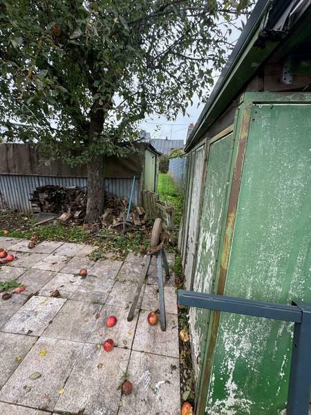 Zum Anwesen gehört außerdem ein Garten mit Garage hinter dem Haus.