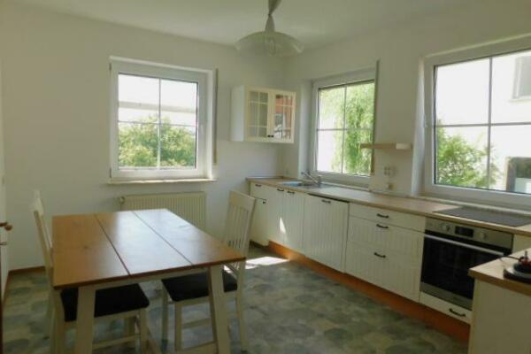 Die angrenzende Einliegerwohnung bietet auf 98 qm Wohnfläche insgesamt 4 Zimmer, Küche, Bad und Gäste WC.