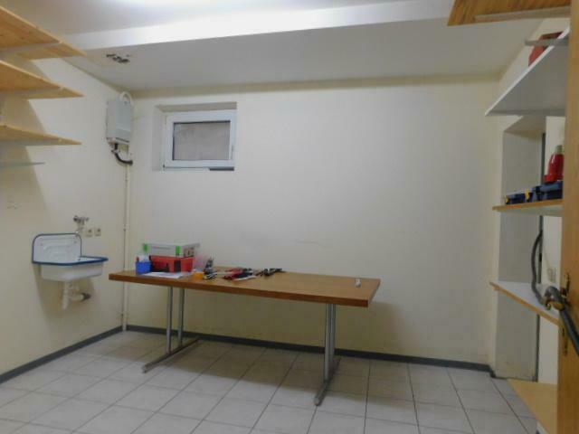 Im Souterrain befindet sich neben den üblichen Kellerräumen auch ein großes Arbeitszimmer . Es ist zur Talseite hin ausgerichtet und verfügt über einen Ausgang zu einer eigenen Terrasse und dem angrenzenden Garten.