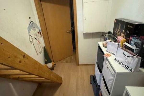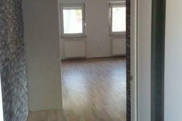 Beim Betreten der Wohnung im Obergeschoss gelangt man in den Flur, von dem aus sich der Wohnbereich erschließt. Angrenzend befindet sich die Küche, die mit einer Einbauküche ausgestattet ist.
