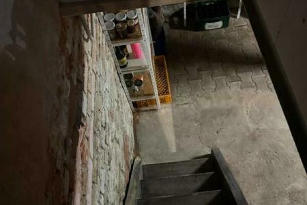 Das Kellergeschoss verfügt über getrennte Gasanschlüsse für beide Wohneinheiten sowie eine Wasserversorgung mit zwei separaten Unterzählern. Darüber hinaus ist hier die neue Gaszentralheizung installiert. Außerdem steht hier ein weiterer Kellerraum in Sandsteinbauweise zur Verfügung.