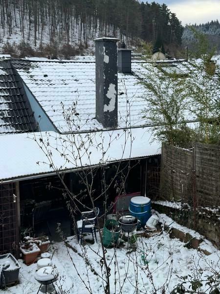 Dieses Gebäude wurde ursprünglich als Einfamilienhaus errichtet und später zu einem Zweifamilienhaus umgebaut. Das Dachgeschoss ist ausgebaut, sodass eine der Wohneinheiten über zwei Etagen genutzt wird. Die Heizungsanlage wurde im Obergeschoss bereits 2016 auf eine Gasbrennwerttechnik umgestellt, im Untergeschoss erfolgte die Erneuerung der Heizungsanlage im Jahr 2024. Im Bereich des Erdgeschosses wurde eine frühere Feuchtigkeitsproblematik an der hangseitigen Rückwand durch Sanierungsmaßnahmen im Innen- und Außenbereich dauerhaft behoben. Zur Ableitung von anfallendem Wasser auf der hangseitigen Terrasse ist ein automatisches Pumpensystem installiert, welche das Wasser kontrolliert in den Kanal leitet.
