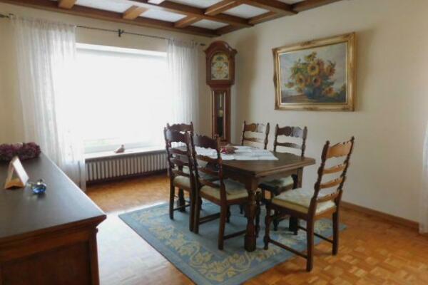 1963 in Massivbauweise errichtet, verfügt es auf zwei Etagen und insgesamt ca. 180 qm Wohn- und Nutzfläche Platz über drei Schlafzimmer, ein Wohnzimmer, ein Esszimmer, eine Küche, ein Badezimmer und ein Gäste WC.