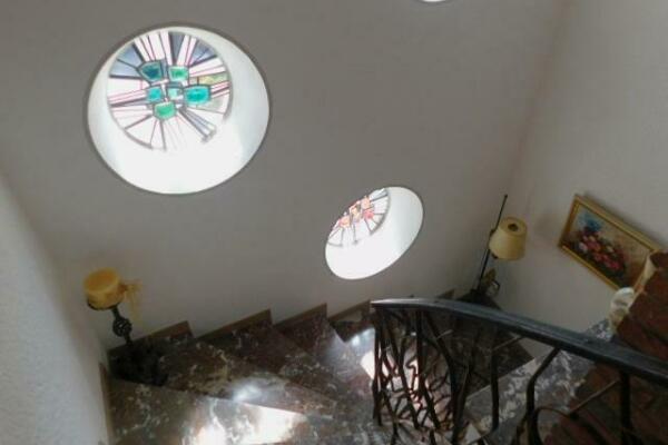 Die Treppen sind mit Terrazzo, der Flur mit Steinplatten und die übrigen Böden mit Parkett bzw. Fliesen/Steinplatten ausgelegt.