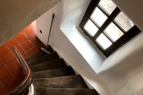 Ca. 300 Jahre altes EFH. Seit vielen Generationen in Familienbesitz befindet sich das schmal geschnittene Reihenmittelhaus in der Nähe der Stadtmitte. Sie betreten das Haus durch eine 2015 neu gefertigte Eingangstüre aus Holz. Im EG finden Sie ein Bad mit Dusche sowie einen kleinen Gewölbekeller vor. Eine Holztreppe führt Sie zum 1. OG, wo Sie eine Küche und einen Wohn - / Essbereich vorfinden. Eine Wendeltreppe führt von hier aus zum 2.OG, indem sich 2 Schlafzimmer befinden. Eine weitere Wendeltreppe bringt Sie auf den Dachboden, der als Stauraum genutzt werden kann, oder Raum für ein weiteres Zimmer bietet.