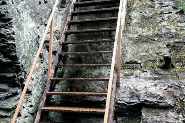 Ein kleiner Hof mit kleiner Felsnasen-Terrasse, die Sie über eine Metallleiter im hinteren Hausbereich erreichen, sind ebenfalls Bestandteil der Immobilie.