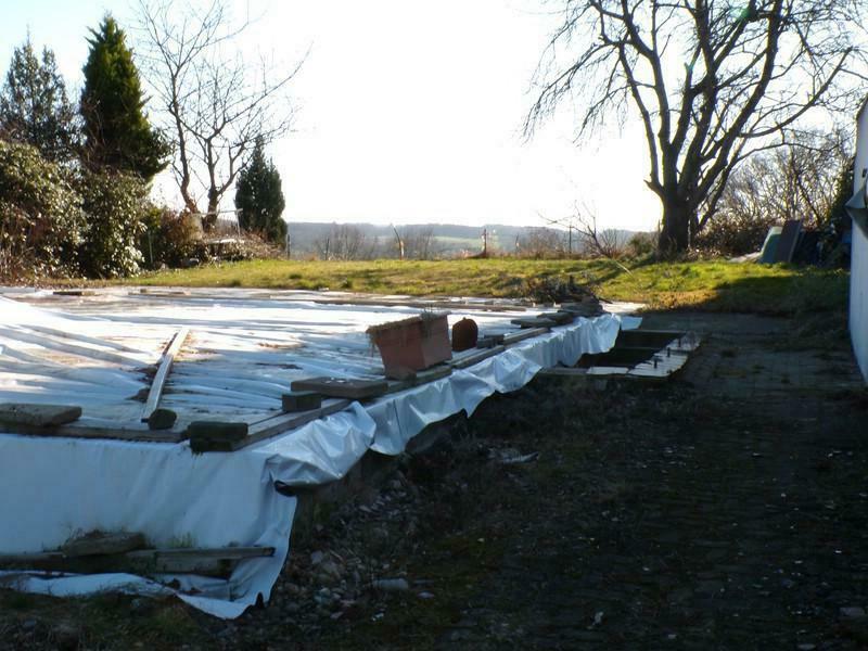 Bei dem Objekt handelt es sich um ein voll erschlossenes Baugrundstück, auf dem viele Jahre ein Einfamilienhaus gestanden hat. Aufgrund eines Brandes und der notwendigen Löscharbeiten war der oberirdische Teil des Hauses nicht mehr zu retten und musste sach- und fachgerecht abgerissen werden. Übrig blieb der große Keller, der den statischen Anforderungen für einen erneuten Aufbau vollwertig und nachweislich entspricht und die Grundlage des Baufensters für ein neues, bevorzugt 1 1/2 geschossiges Einfamilienhaus bilden könnte. Auch die Garage am rechten Grundstücksrand und das Carport am linken Grundstücksrand blieben von den Flammen verschont und können zukünftig ohne Aufwand wieder genutz werden. Die an die Kellerdeckenfläche angrenzende Terrasse von ca. 60 qm bedarf nur einer leichten Aufhübschung und könnte dann wieder zu einer "sommerlichen Wohnraumerweiterung" dienlich sein.