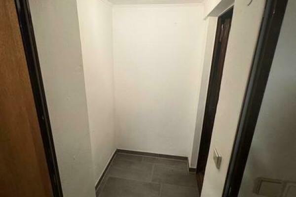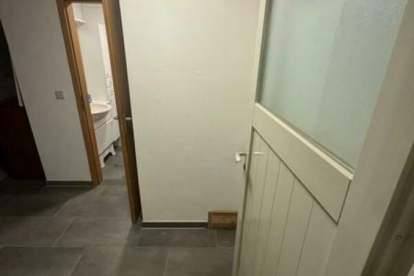 Zusätzlich ist hier ein separates 1-Zimmer-Appartement mit eigenem kleinen Flur untergebracht. Direkt hinter dem Eingangsbereich liegt eine frühere, kompakte Studentenküche. Geradeaus befindet sich ein Duschbad mit WC und Fenster.