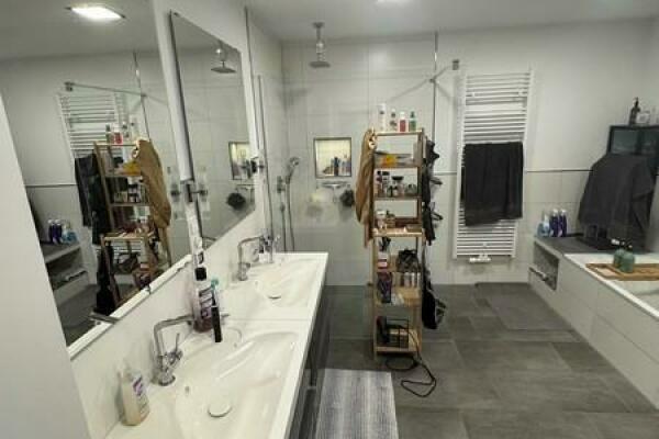 Die Immobilie verfügt über eine Gesamtwohnfläche von rund 350 m². Davon entfallen ca. 76 m² auf eine Einliegerwohnung mit separatem Eingang, die bei Bedarf in die Hauptwohnung integriert werden kann, sowie weitere ca. 24 m² auf ein separates 1-Zimmer-Appartement mit eigenem, überdachtem Zugang. Aktuell ist das gesamte Objekt für monatlich 2.900 € kalt vermietet.