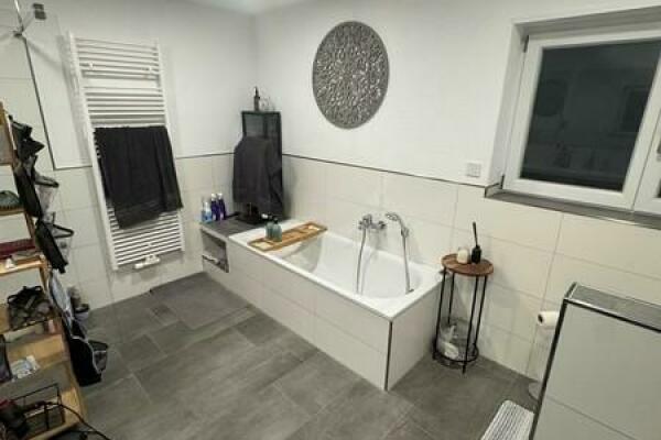 Vom Vorflur aus erreichen Sie zudem das Gäste-WC mit Fenster sowie das Hauptbad. Dieses ist ausgestattet mit WC, Badewanne, ebenerdiger Dusche, Waschbereich und Tageslichtfenster.