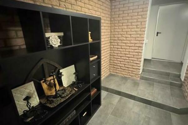 Beim Betreten des Kellergeschosses gelangen Sie zunächst in den Bereich der Einliegerwohnung. Von dort führt ein Vorflur in die Küche, die mit einer neuen Einbauküche ausgestattet ist. Über leicht versetzte Wohnebenen erreicht man anschließend den Wohnbereich mit Fenster. Am Ende dieses Bereichs befindet sich das Badezimmer mit Dusche, WC und Waschbecken. Über eine weitere abgesetzte Ebene gelangen Sie in das Schlafzimmer, das am Ende des Flurs liegt und über einen zusätzlichen separaten Ausgang verfügt.