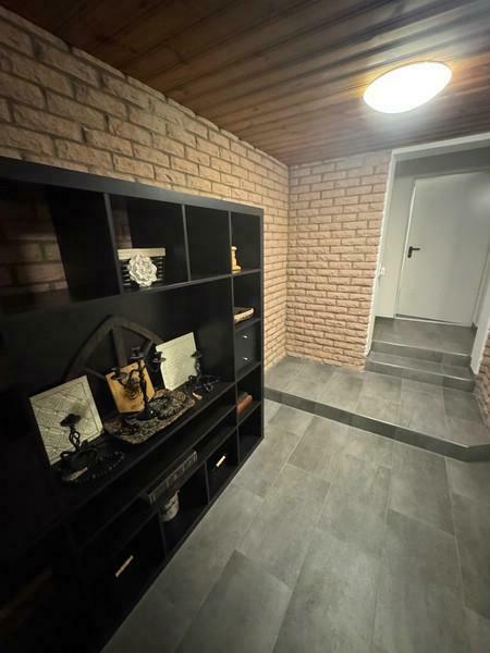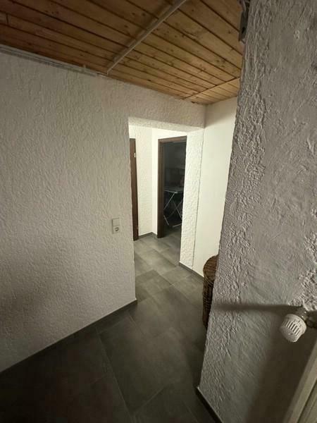 Beim Betreten des Kellergeschosses gelangen Sie zunächst in den Bereich der Einliegerwohnung. Von dort führt ein Vorflur in die Küche, die mit einer neuen Einbauküche ausgestattet ist. Über leicht versetzte Wohnebenen erreicht man anschließend den Wohnbereich mit Fenster. Am Ende dieses Bereichs befindet sich das Badezimmer mit Dusche, WC und Waschbecken. Über eine weitere abgesetzte Ebene gelangen Sie in das Schlafzimmer, das am Ende des Flurs liegt und über einen zusätzlichen separaten Ausgang verfügt.