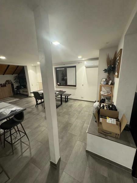 Das Haus wurde 2017 umfassend renoviert. In diesem Zuge wurden auch die Bäder erneuert, die vorhandenen Badmöbel verbleiben im Objekt. Aufgrund der bisherigen Vermietung an amerikanische Mieter sind Schlafzimmerschränke vorhanden, die ebenfalls im Haus verbleiben. Im Jahr 2020 wurde im Erdgeschoss eine Klimaanlage installiert. Die Wohnebenen sind versetzt angeordnet, was dem Gebäude eine offene Raumstruktur verleiht, das Wohnzimmer bietet eine Deckenhöhe von ca. 2,80 m. Die Heizungsanlage wurde 2022 durch einen modernen Gas-Brennwertkessel ersetzt.