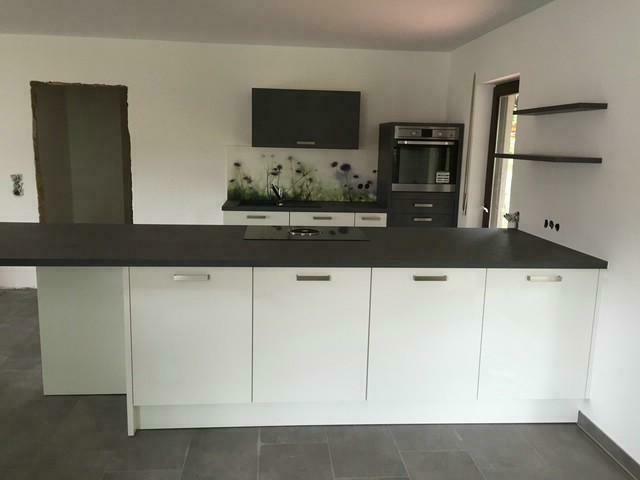 Über einen weiteren Flurbereich öffnet sich der großzügige Wohnbereich mit versetzten Wohnebenen, der dem Raum eine besondere Struktur verleiht. Angrenzend befinden sich die Küche mit separater Pantry sowie eine moderne Kochinsel mit integriertem Kochfeld und nach unten geführtem Dunstabzug in der Arbeitsplatte. Vom Essbereich aus gelangen Sie direkt in den angebauten Wintergarten. Zusätzlich besteht vom Wohnzimmer aus Zugang zu einer Terrasse.