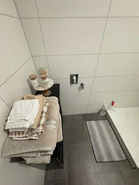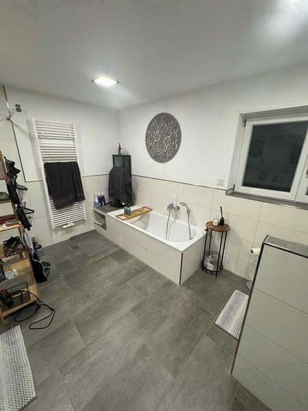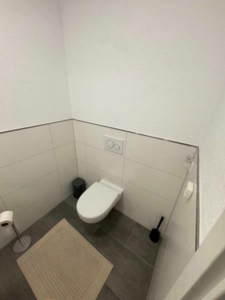 Vom Vorflur aus erreichen Sie zudem das Gäste-WC mit Fenster sowie das Hauptbad. Dieses ist ausgestattet mit WC, Badewanne, ebenerdiger Dusche, Waschbereich und Tageslichtfenster.