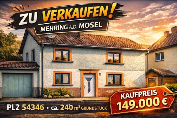Mehring ist auch verkehrstechnisch gut angebunden: Die Autobahn A1 und die Bundesstraße 53 liegen in unmittelbarer Nähe, Autobahnauffahrt nur 10 Min., bis Trier sind es ca. 20 Min. , bis Luxemburg Flughafen ca.45 Min.