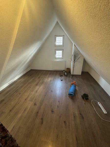 Über das Treppenhaus gelangen Sie in das zweite Obergeschoss. Hier befinden sich ein Schlafzimmer sowie ein weiteres, etwas kleineres Zimmer unter Dachschrägen.