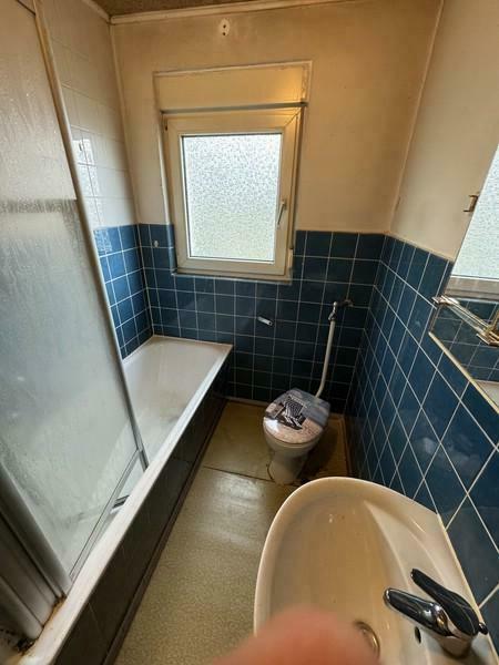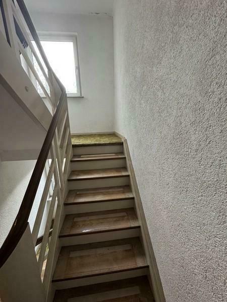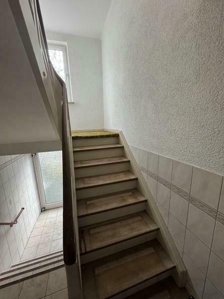 Beim Betreten des Hauses gelangen Sie in das zentrale Treppenhaus, von dem aus sowohl das Kellergeschoss als auch die oberen Etagen erschlossen werden. Auf der linken Seite befindet sich die erste Wohneinheit. Diese verfügt über ein Badezimmer mit Dusche, WC, Fenster und Waschbereich. Angrenzend liegen die Küche sowie zwei weitere Zimmer, die flexibel, beispielsweise als Wohn- und Schlafzimmer, genutzt werden können.